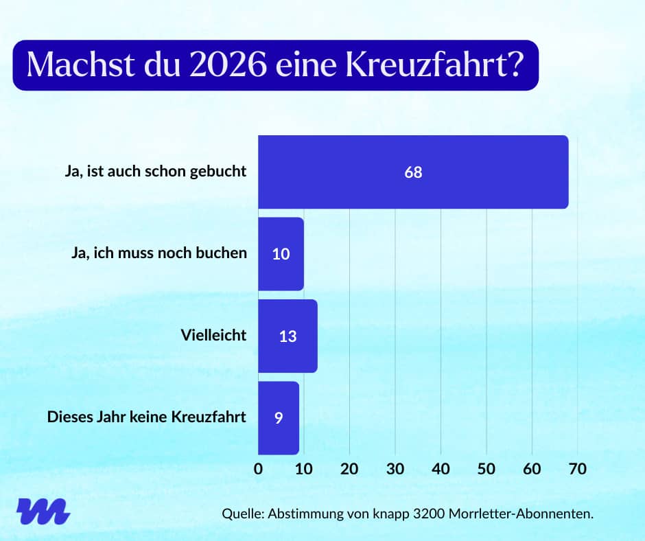 Ich hatte euch im letzten Morrletter gefragt, wie viele dieses Jahr eine Kreuzfahrt machen - mehr als 3000 von euch haben geantwortet.